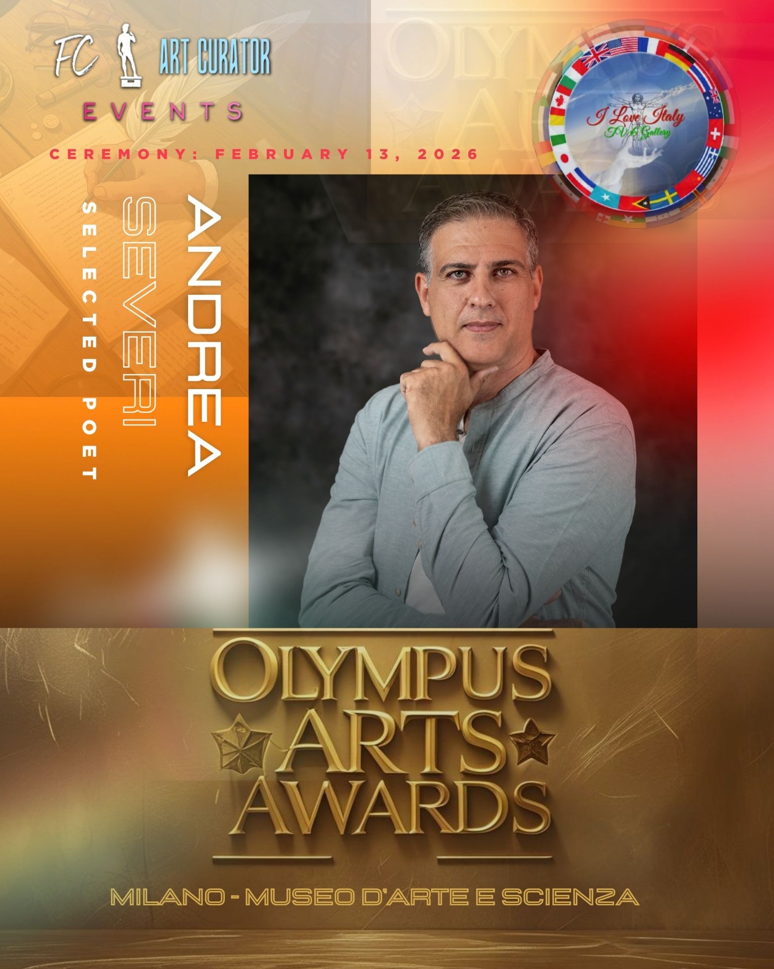 MILANO – In un'atmosfera di grande fermento culturale, alimentata dalla concomitanza con le Olimpiadi di Milano Cortina, nasce un nuovo prestigioso appuntamento per il mondo della cultura: l'Olympus Arts Awards. Il premio internazionale, dedicato alle arti visive e alla poesia, è bandito dalla FC ART CURATOR EVENTS in collaborazione con I Love...