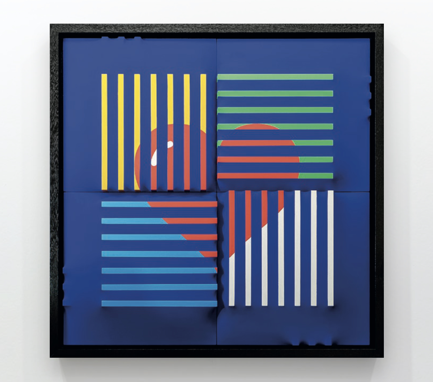 Superato l'ingresso, la mostra entra nella sezione dedicata alla Ricomposizione, allestita nelle sale della biblioteca. Qui il codice linguistico si trasforma radicalmente e la scomposizione emotiva lascia spazio alla ricerca di ordine. Nelle serie Metaponti e Concordanze, la tela estroflessa diventa un vero e proprio "spartito tridimensionale" attraverso il quale l'artista indaga il concetto di connessione. La ricomposizione descrive la ricerca di una coerenza nuova, più consapevole. Il percorso si conclude con l'opera Pace, intesa non come assenza di conflitto, ma come disciplina strutturale ed etica: un equilibrio da riconquistare attraverso il lavoro interiore e collettivo.