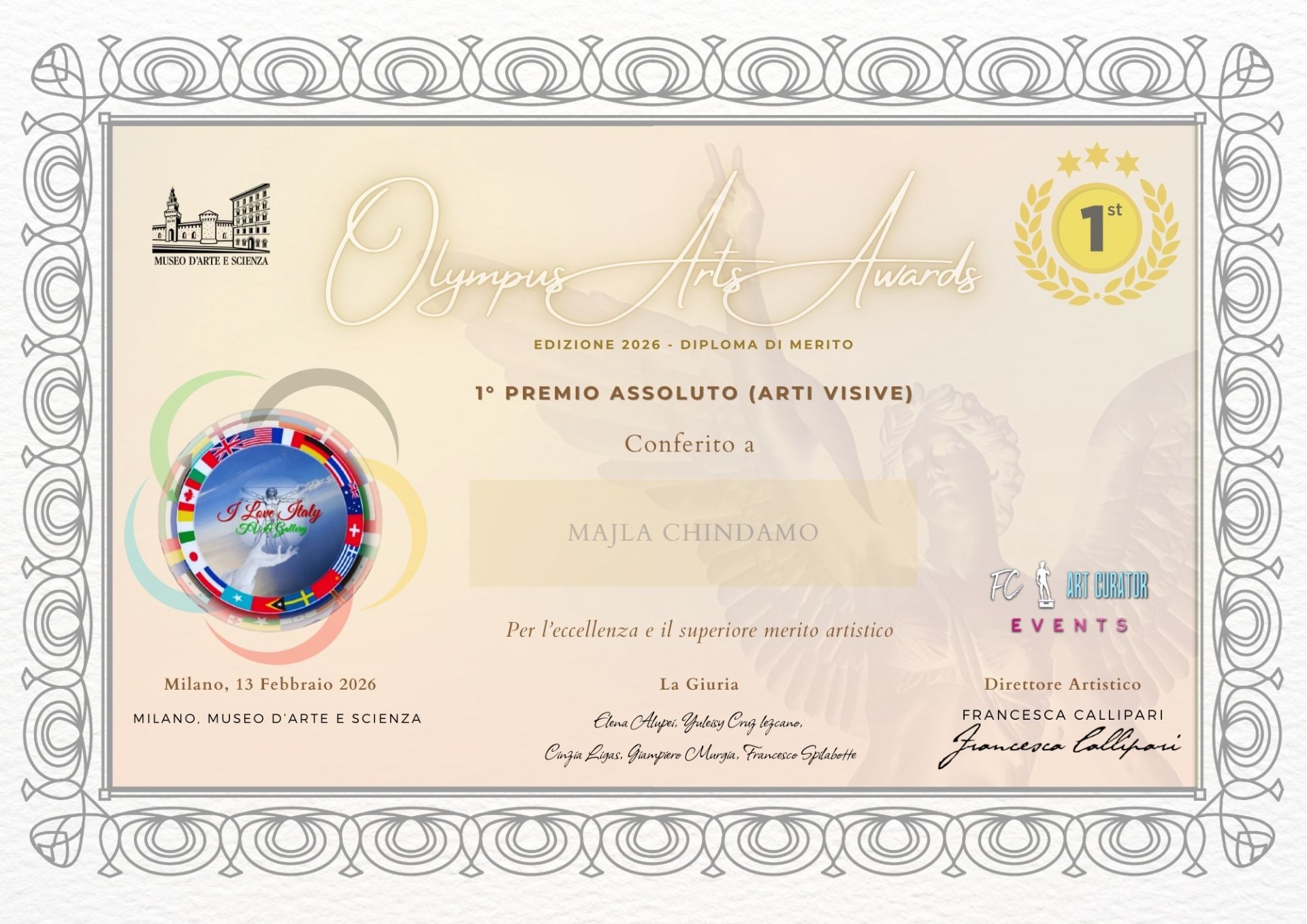 L'Olympus Arts Awards, celebrato nella prestigiosa cornice del Museo d'Arte e Scienza di Milano, è stato molto più di una premiazione: un incontro di anime, un manifesto di resilienza e bellezza. Nel contesto di questa prima edizione del Premio, conclusasi di recente, a seguito della votazione di pubblico e giuria il primo premio per la sezione Arti Visive è stato conferito alla pittrice Majla Chindamo.